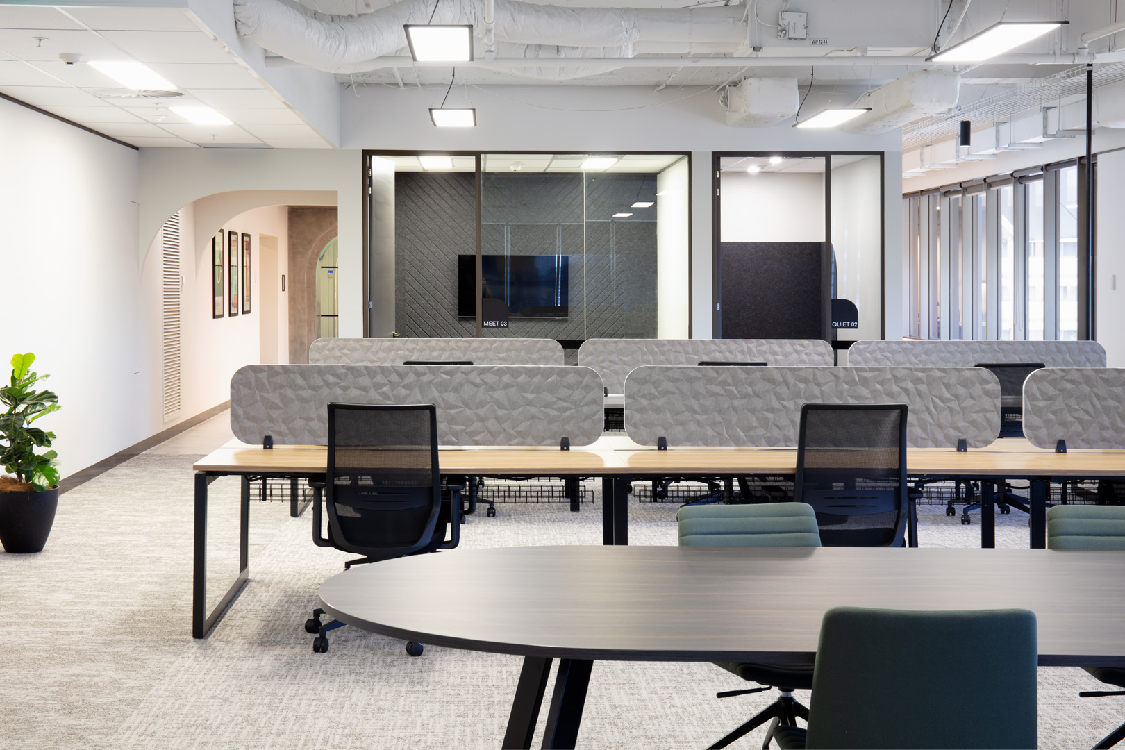 Ion Duet is compressed from EchoPanel® 24mm. By reducing noise distractions and providing a more defined personal space, it helps individuals concentrate better on their tasks. It will improved productivity, and less likely to be disrupted by external noises or visual distractions.